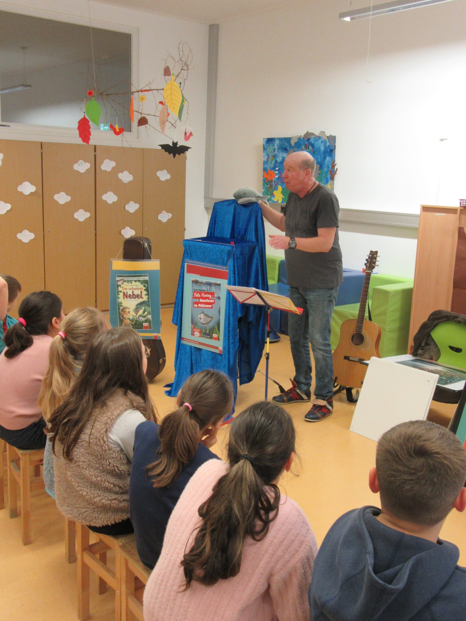 Die Lesung war weit mehr als ein bloßes Vorlesen: Kasmann gestaltete das Erlebnis durch stimmungsvolle Musik und anschauliche Darstellungen, bei denen die Kinder aktiv mitmachten. Durch einen fiktiven Tauchgang und Rollenspiele erfuhren die Schüler spannende Details über das Meer und seine Bewohner wie den Hailänder und den Seeteufel Lotte. Die Gefahr durch die Verschmutzung der Ozeane, die auch im Buch eine zentrale Rolle spielt, wurde auf kindgerechte und zugleich eindrückliche Weise vermittelt.